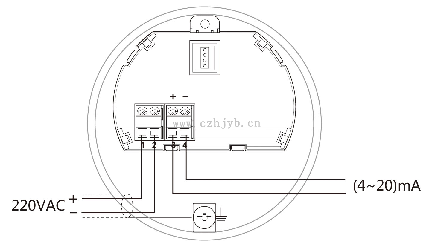 (4~20) mA/HART(四線制) 供電電源和電流信號分開,各自分別使用一根兩芯屏蔽電纜線。具體供電電壓范圍參見技術(shù)數(shù)據(jù)。