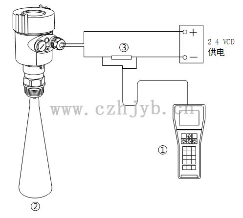 (4~20) mA/HART(兩線制) 供電電源和輸出電流信號共用一根兩芯屏蔽電纜線。具體供電電壓范圍參見技術(shù)數(shù)據(jù)。對于本安型須在供電電源與儀表之間加一個安全柵。