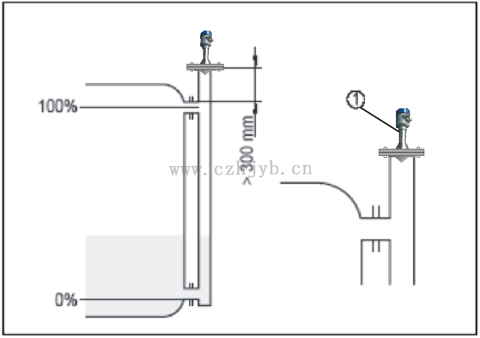 Ø 當罐中有障礙物影響測量時,要加裝反射板才能正常測量。