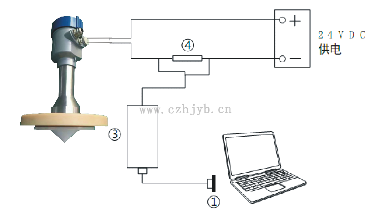 (4~20) mA/HART(四線制)     供電電源和電流信號分開,各自分別使用一根兩芯屏蔽電纜線。具體供電電壓范圍參見技術數據。